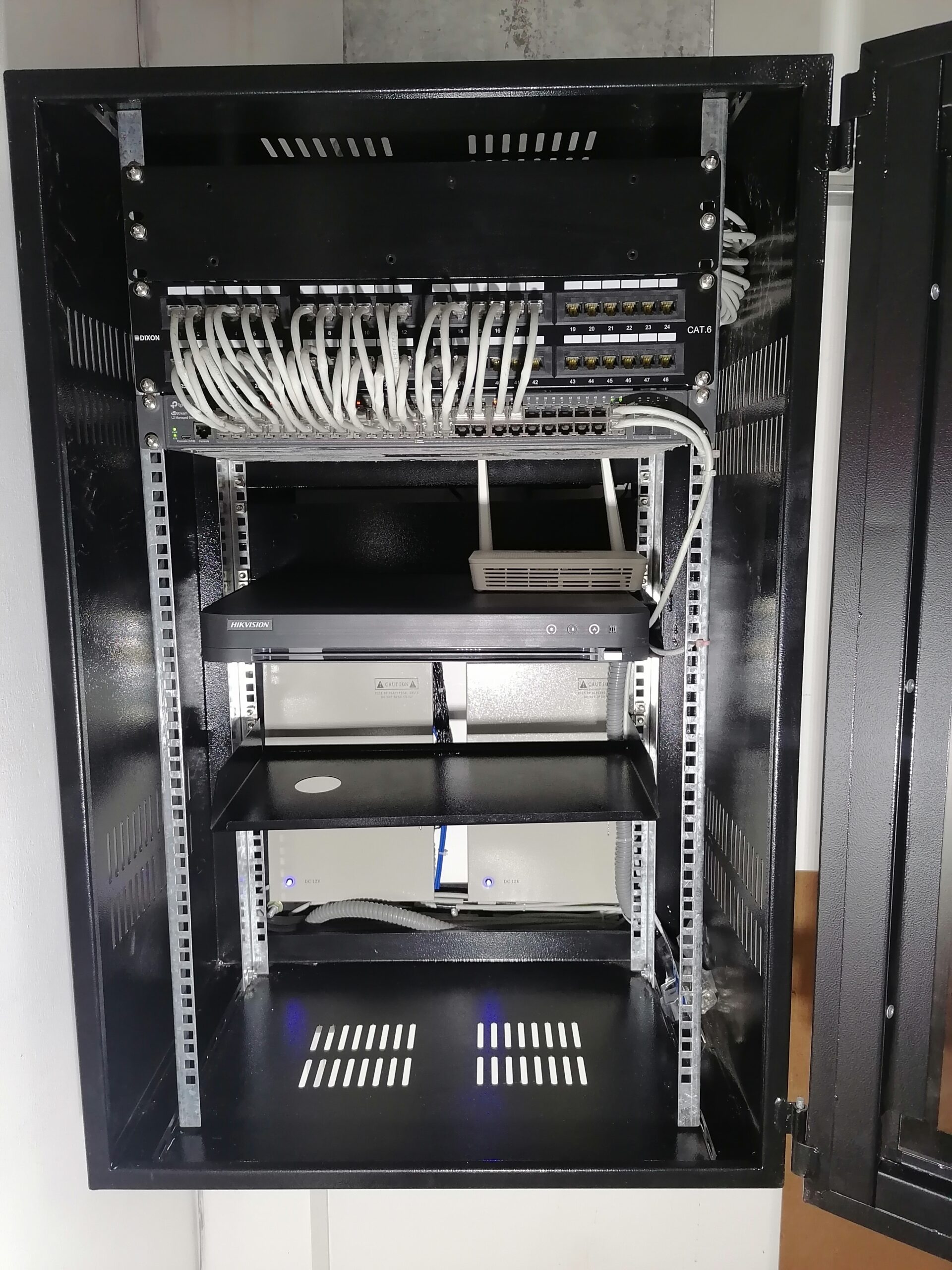 ✅ Instalación de patch panel de 48 puertos y switch administrable de 48 puertos para LAN, sistema de DVR de 32 canales UHD y una ONT de 300 GB/seg.